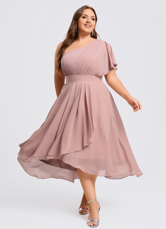 Robe de Demoiselle d'Honneur Rose Poudrée : Élégance Asymétrique